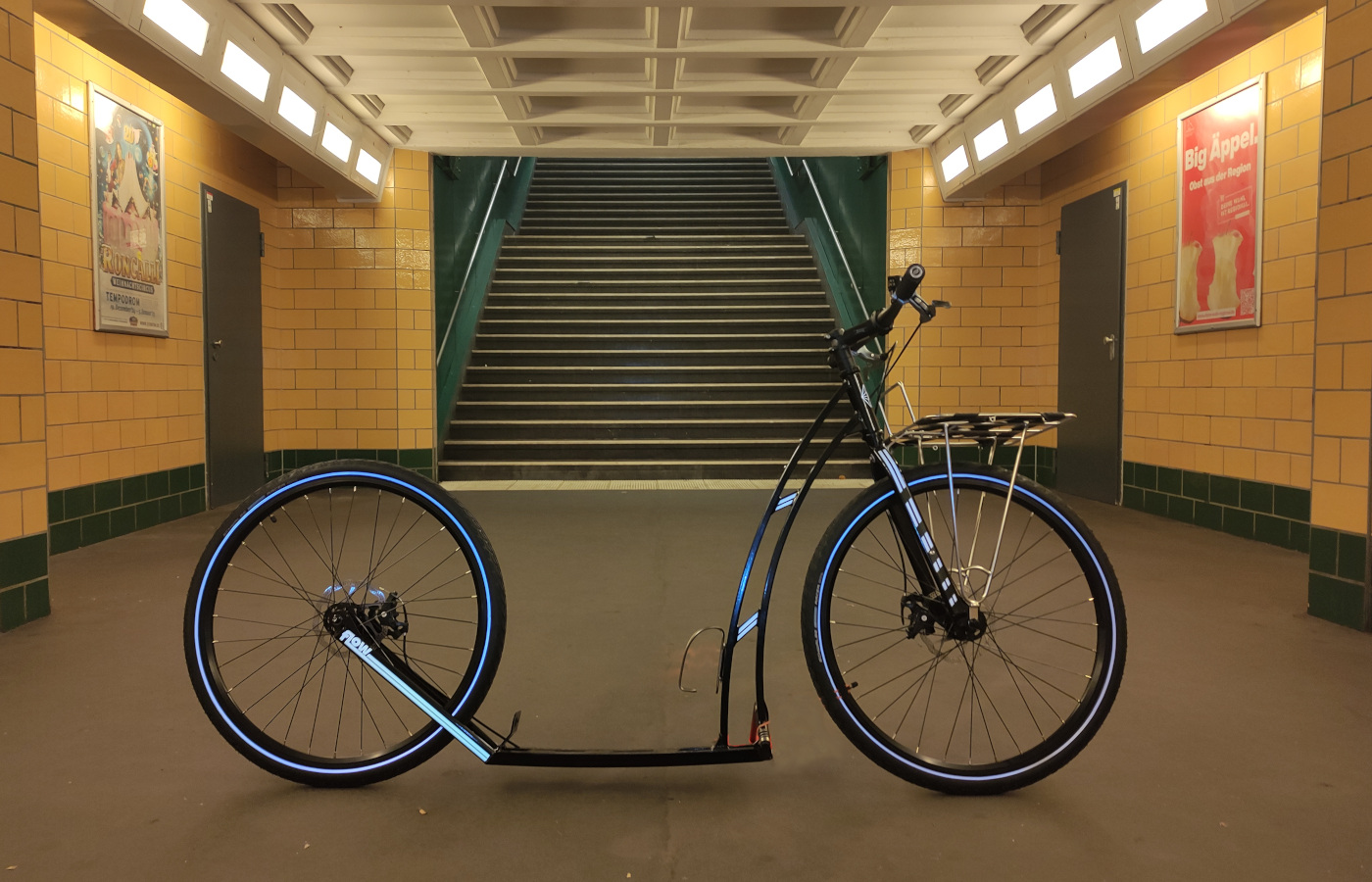Symmetrie von Raum und Roller mit kleinen, asymmetrischen Ausprägungen im Detail. Karl Friedrich Schinkel hätte seine Freude an diesem Bild. Und vielleicht hätte er statt einer Schneeflocke ein #footbike zur Verdeutlichung seiner Entwurfsprinzipien gewählt. Spaß beiseite, das Foto zeigt, was für einen großen Stellenwert die BVG in früheren Zeiten ihren Bauten zubilligte. Und es zeigt, wie schön sich unser Roller dort einfügt. ;-)